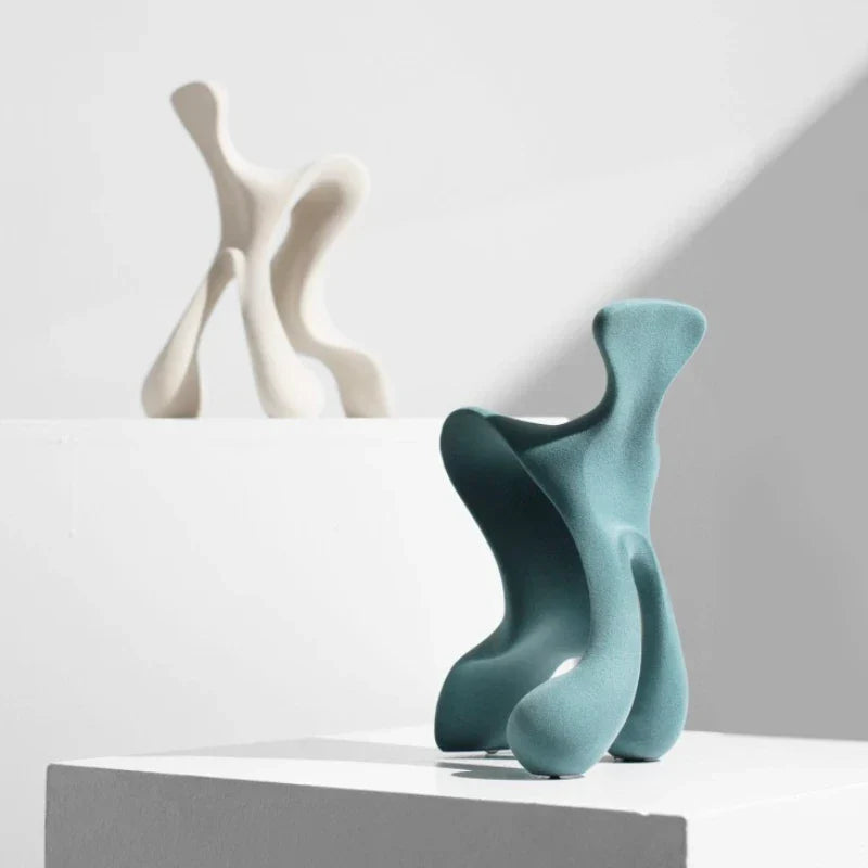 This sculpture is a study in "Haptic Design". Its abstract, organic form mimics the fluid movement of a dancer or a smoke plume frozen in time. But the true magic lies in its skin. Coated in a unique flocking texture, the piece absorbs light rather than reflecting it. It does not shout for attention with shine; it draws you in with a quiet, moss-like depth.