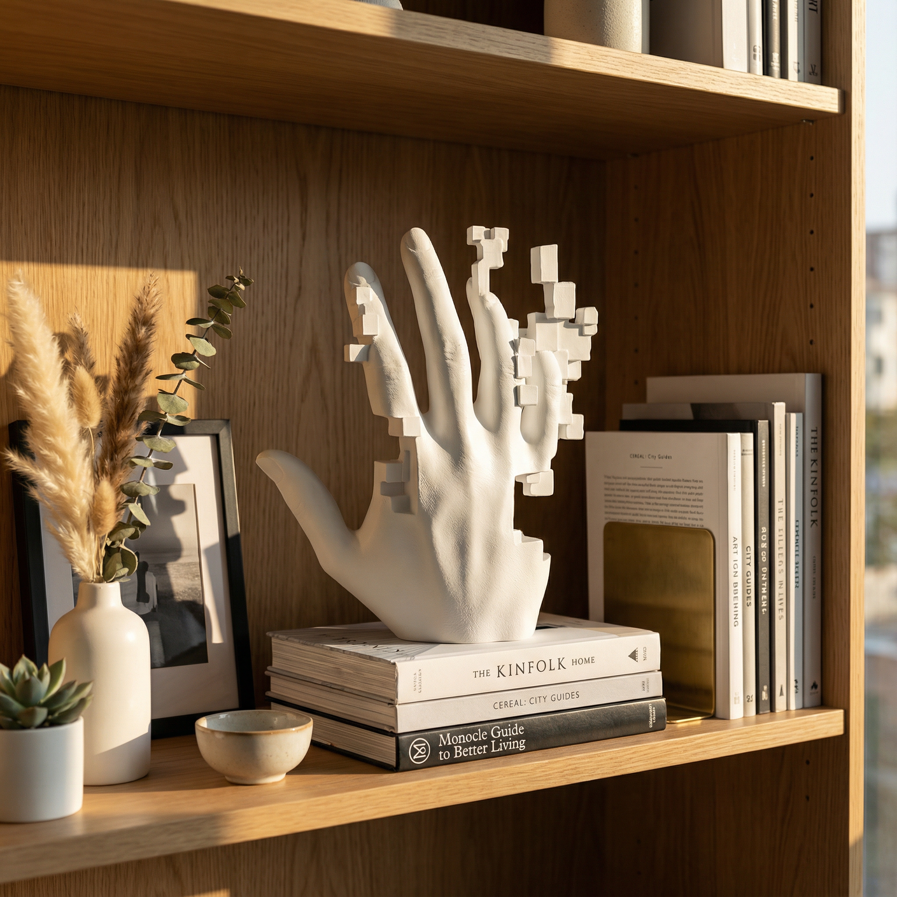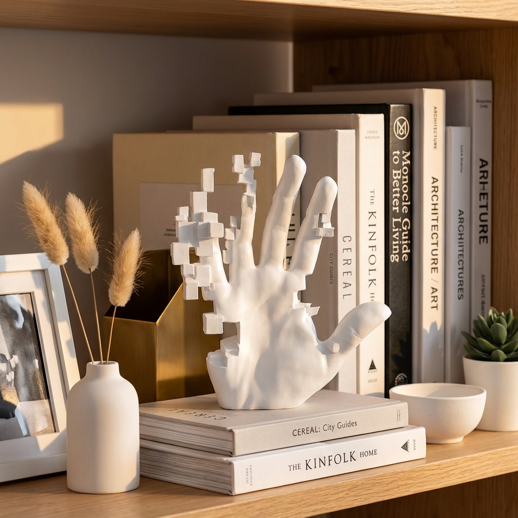 • The White of Oblivion: The matte white finish strips away identity and distraction, reducing the hand to its purest, most universal form—resembling a plaster cast of a distant memory.