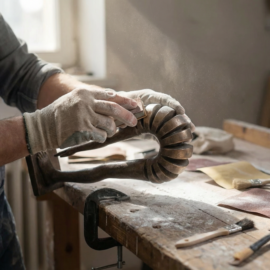 Behind the finished form of 'The Echo' lie countless nights of refining sketches and adjusting molds. We didn't just shape resin and bronze; we shaped a phenomenon. We asked ourselves: How does a curve entrap a memory? How does a solid object mimic the fleeting nature of sound?