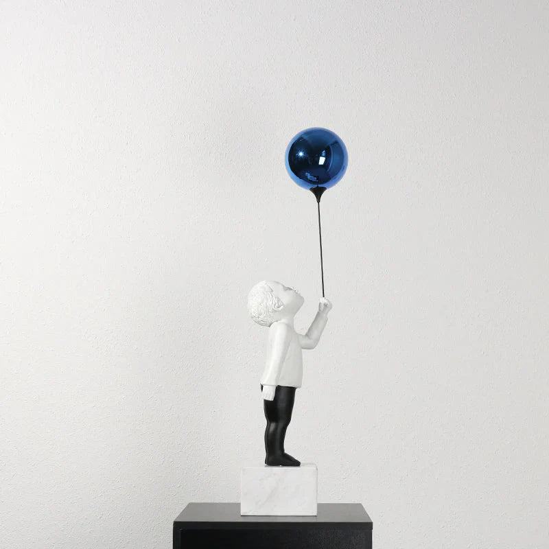 "AeroCherub" is a children's sculpture with balloons, with a simple and modern Nordic style. Combining marble, resin and metal, this piece exudes sophistication and artistry through vivid colors and realistic shapes.