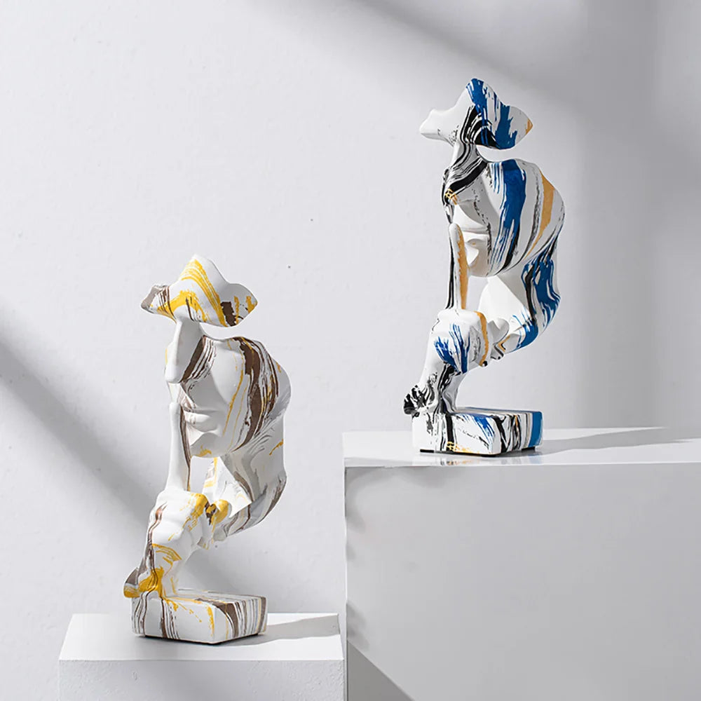 "CamouFig" is a name that combines "Camouflage" and "Figure," succinctly capturing the essence of an abstract sculpture with a camouflage design, suitable for modern art and Nordic-style home or office decor.